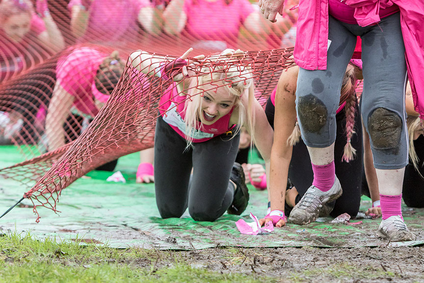 We started the Pretty Muddy by stepping foot in a strong-smelling pit of mud to begin our warm-up, where we laughed and danced away with our fellow participants. We were all ready to support each other through the filthy obstacles and put ourselves outside our comfort zone. As soon as I heard the words ‘Ready, Set, Go’ was when I saw all the girls run and hide behind one another as all the volunteers began to throw water over everyone. I managed to avoid that one.